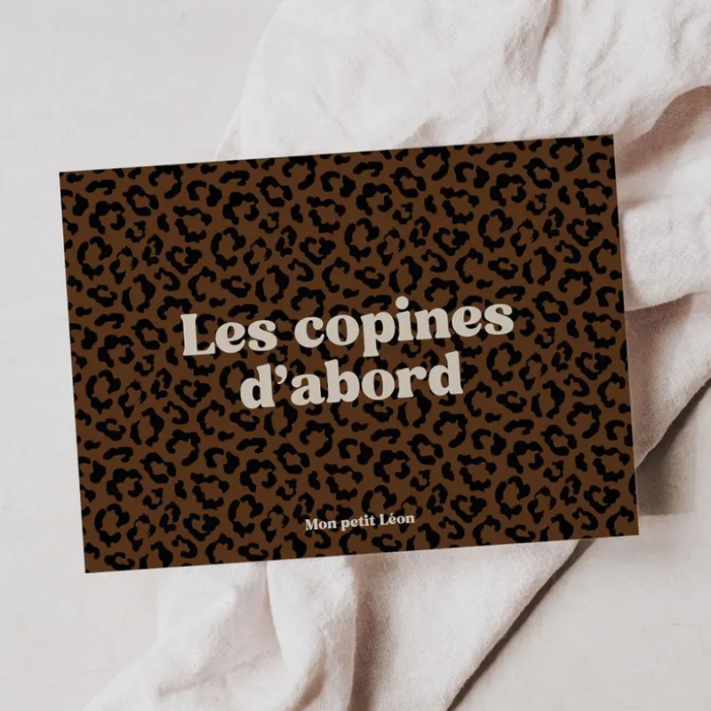Carte A6 en léopard de Mon Petit Léon avec les mots « Les Copines d’Abord ».