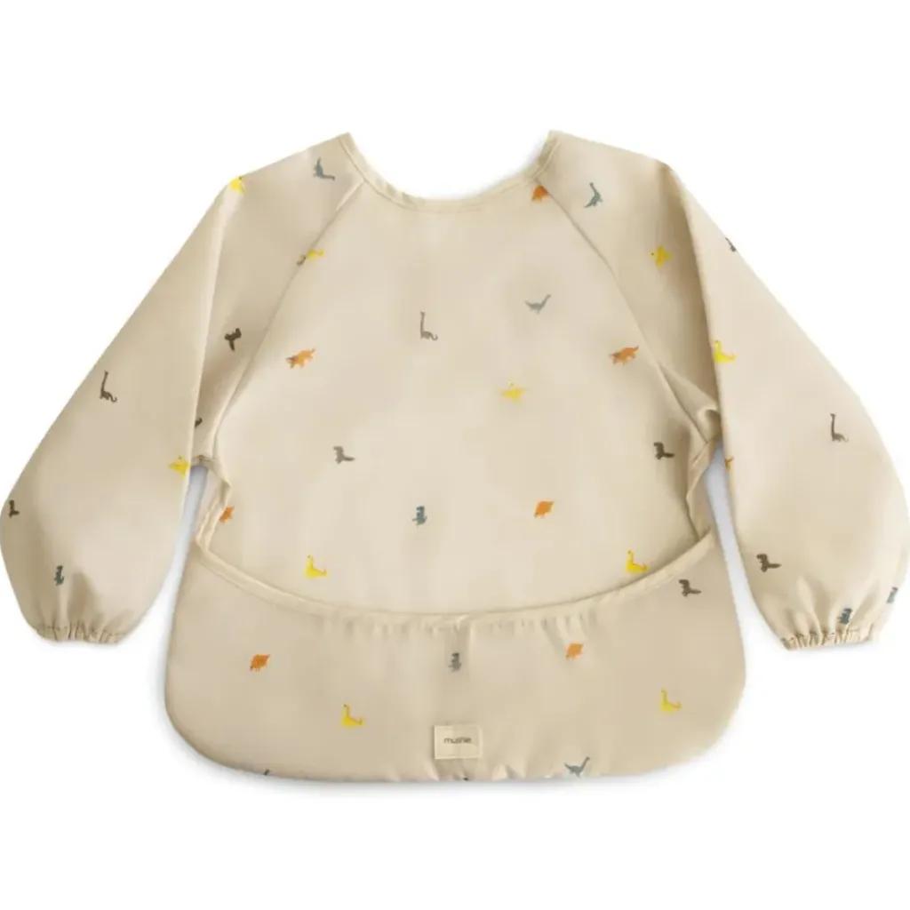 Le bavoir imperméable doté de manches longues est idéal pour protéger les vêtements au moment des repas. On craque pour son imprimé Dino.