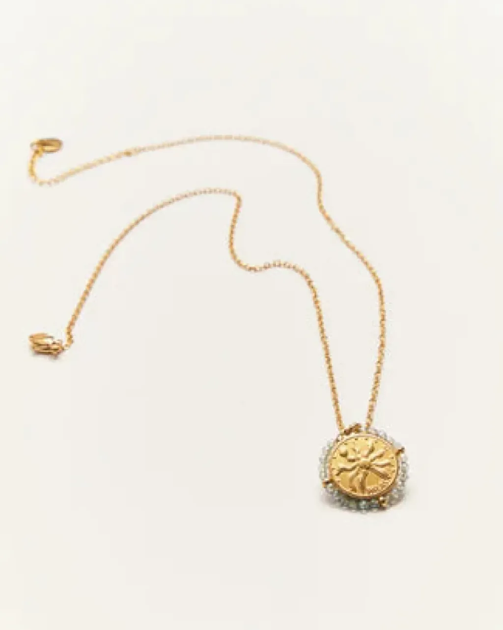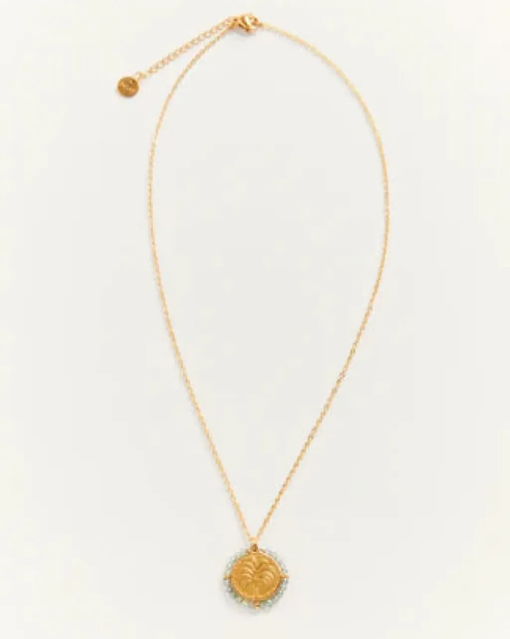 Le collier Belamar en acier inoxydable doré 18 carats, c’est le soleil et les palmiers à votre cou, peut importe la météo. Une touche lumineuse pour toutes vos tenues. Un collier médaille orné de pierres semi-précieuses qui ne décolore pas (promis) !