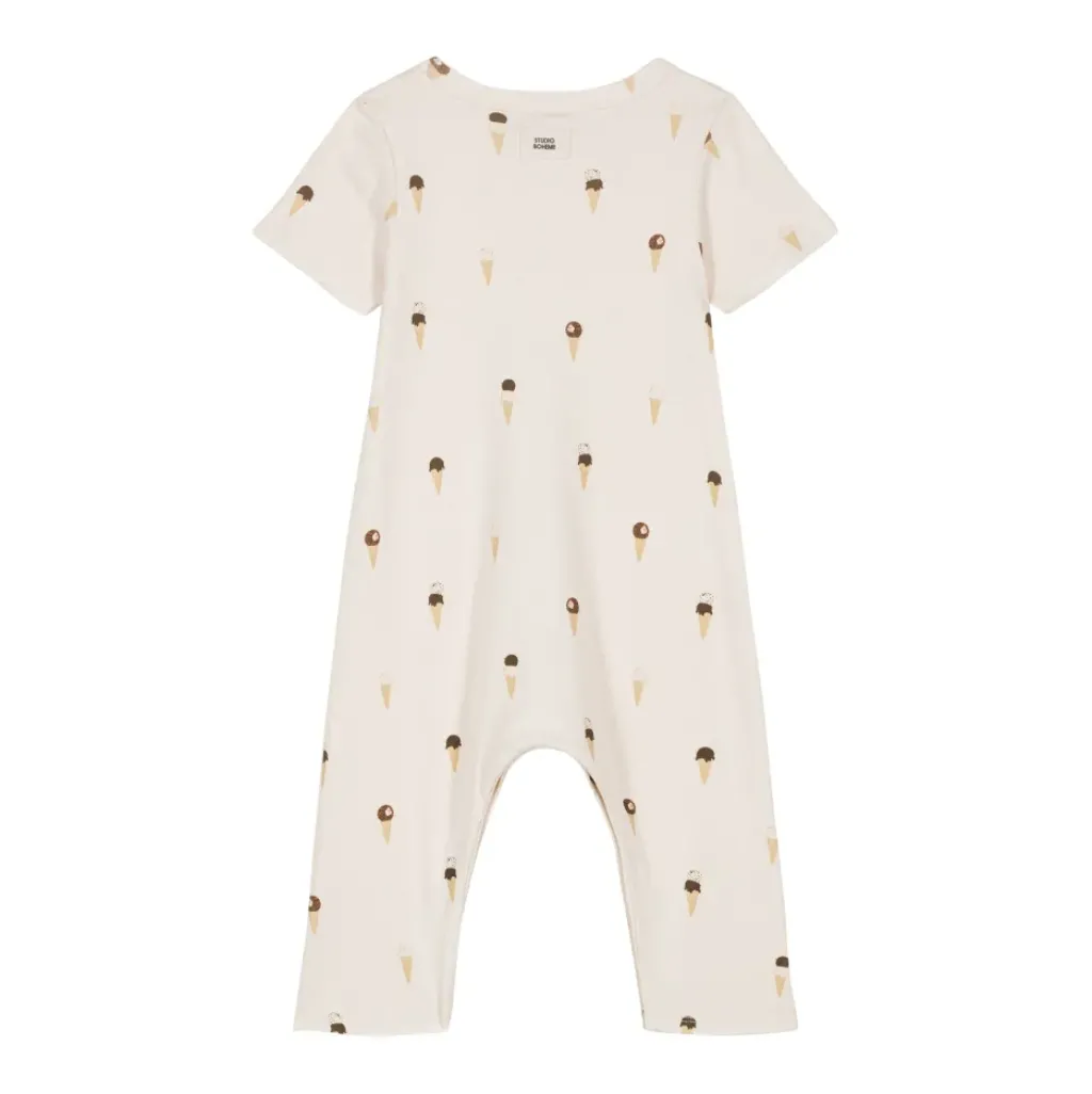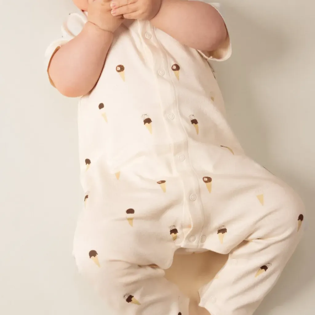 Combi mixte à motifs glaces, bien trop mimi ! À manches courtes et en coton biologique, il sera tout doux sur la peau.